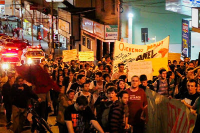 - Contra à opressão às mulheres, negros e homossexuais! Fora Feliciano! Pela criminalização da homofobia! Contra a violência contra mulheres! Abaixo o genocídio contra os negros nos bairros pobres!